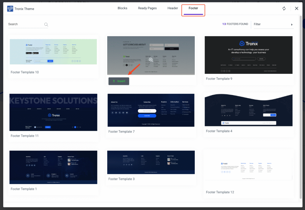 Themepul provides ready-made Header and Footer templates that you can easily import and use on your website.